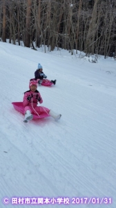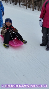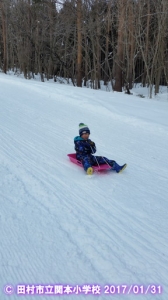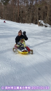 全校遠足でスキー・そりすべりを実施しました。