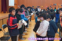 2017年3月7日 09時15分 伝統の鼓笛が引き継がれました。その後、6年生と在校生で楽しいひとときを過ごしました。