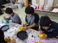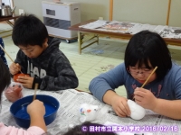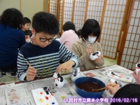 見学先は、三春駒や干支の張り子人形で有名な高柴デコ屋敷です。子どもたちは、1日に何個作るのか、絵を間違えたらどうするのか、原料は何かなど疑問に思ったことを働いている人に尋ねたり、見学したりしていました。また、絵付けを体験して作る楽しさも味わうことができました。
