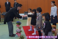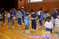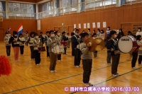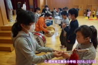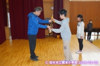 鼓笛隊が新しい編成になり、6年生から,指揮杖と楽器が引き継がれました。