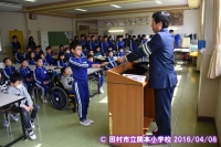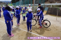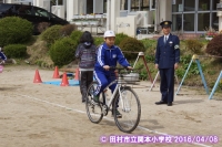 交通安全教室を行いました。6年生が家庭の交通安全推進委員に委嘱されました。その後校庭で、横断の仕方や自転車の点検の仕方・乗り方を学習しました。
