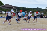 青空の下、校下連合大運動会が行われました。子どもたちは練習の成果を存分に発揮し、力一杯がんばりました。