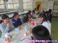 11月の18日からは、上手なブラッシングができるようになってほしいと考え、学級毎に染め出しチェックをしながらの歯みがき指導をしています。染め出し液で見やすくなった磨き残しを確かめながらきれいに磨く方法を練習しました。磨き残しが目に見えるので、どの児童も歯ブラシの当たる角度を工夫するなど真剣に取り組んでいました。