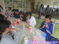 本校では、歯科医師からの進めもあって、イエテボリ方(フッ素の付着率を高めるための歯みがき方法)という歯みがきの仕方を取り入れるなど、歯みがき指導に力を入れています。