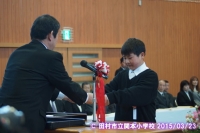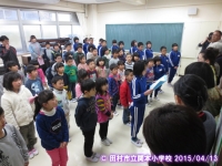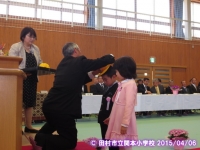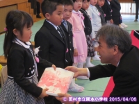 4月6日(月)10:00より平成27年度の入学式を実施しました。新入学児童11名全員に校長から教科書が手渡されしっかり学習に励むよう話がありました。当日は、大変天気が良く新入学児童の前途を祝福しているかのようでした。