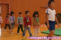 1,2年生による個人競技「金魚はいくつ」の練習風景です。
