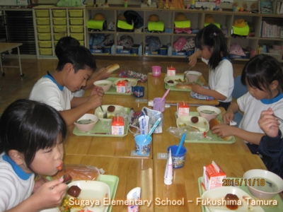 2年生は、栄養士の先生と一緒に給食も食べました。