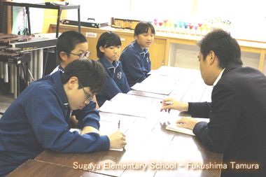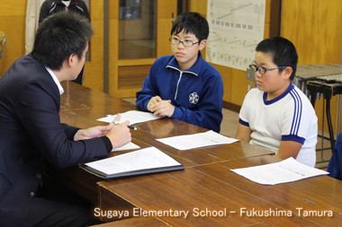 福島民友新聞社の記者が、子どもたちの紹介記事を掲載したいということで来校されました。代表の56年生4名が、学習発表会の抱負や菅谷小で学んだことなどのインタビューを受けました。