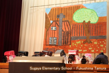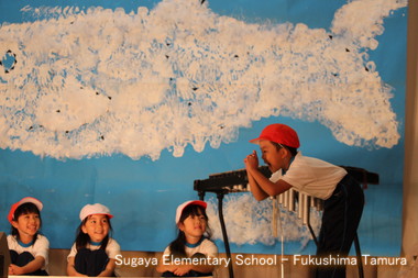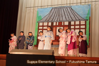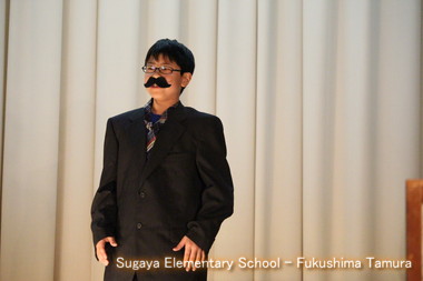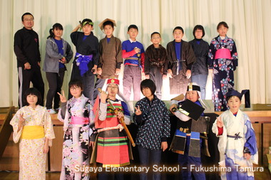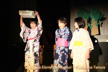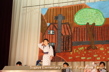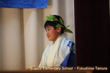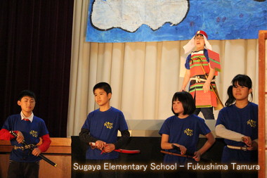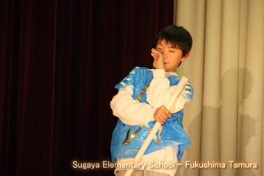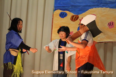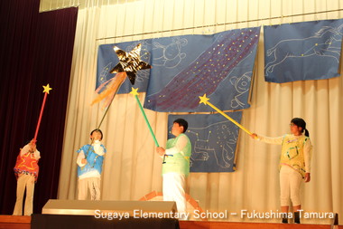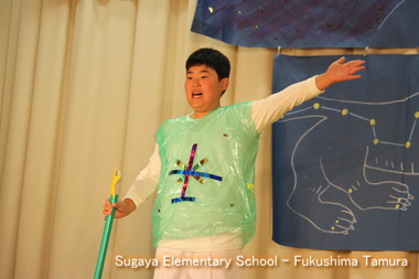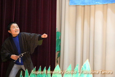 6年生は,総合的な学習の時間に菅谷の伝説や菅谷小学校の歴史を調べ、発表することにしています。今日の学習発表会は、オムニバス形式で場面を変えながら、それを紹介していきました。地域内の沼に伝わる伝説からスタートです。