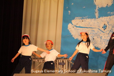 元気な劇のあとに、記念Tシャツを着てみんなで力一杯元気なダンスを披露しました。