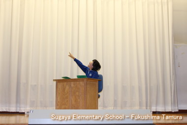 全校集会にて、4年生が社会科で勉強したことを発表しました。