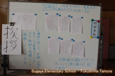 全校集会における校長講話では、その内容をふまえて自分の意見をまとめる「対話黒板」を7月から行っています。5・6年生、さらには4年生も参加しています。