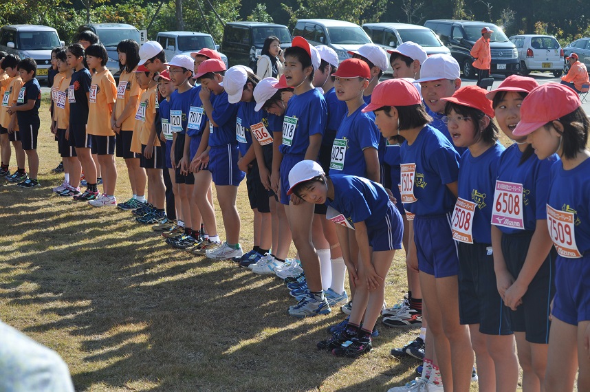 秋晴れの汗ばむ陽気の中、田村富士ロードレース大会に4年生以上の部30名、親子の部2組が参加しました。おそろいのTシャツは会場内でもどこにいるかすぐ分かります。