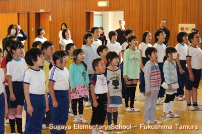 今月の歌「翼をください」と校歌を歌いました。