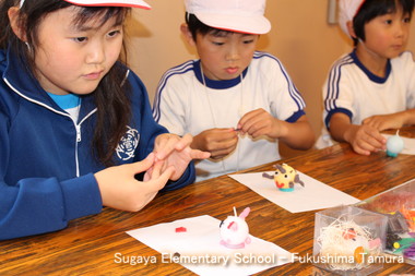 まず始めに、キャンドルつくりを体験しました。ろうの板を手で温めて、粘土細工のようにくっつけます。子どもたちは才能ありますよ!!