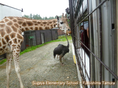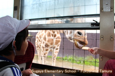 まずは、サファリカーで動物たちの中を巡ります。ライオンの時は窓を開けちゃダメですよ。キリン君からOKです。えさを預けてもらったので、手を出さないようにして、キリンやその他の動物たちにあげます。車窓の右から左へ動きながら、子どもたちの歓声が響きました。