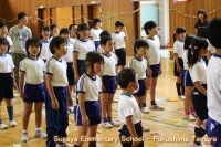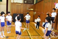 456年生は、毎朝、スクールバス登校後陸上練習をしています。子どもたちの体力向上が本校の重点課題であることから、担当の先生方が率先して子どもたちを指導しています。
