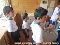 順番を待つ1年生。「やっぱり上手だなぁ。」