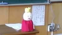 今日(22日)は、1年生の教室に特別に養護の先生と歯の王様が来てくださいました。