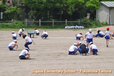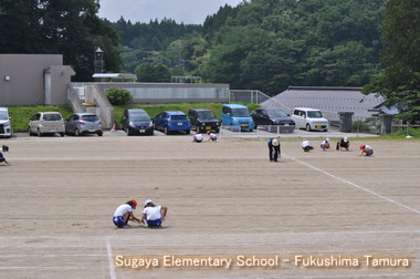 校庭の草も次第に伸びてきました。昨日、体育主任が校庭をきれいにならしましたので、今日の業間は、みんなで草取りです。子どもたち55名と先生方全員で取りかかると見違えるようになります。