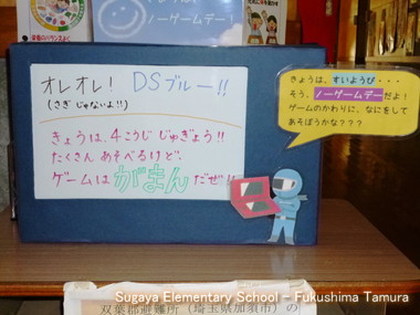 子どもたちは家庭でゲーム、テレビ等に触れる時間が多く、特に田村市の中でも滝根町はその傾向が顕著です。子どもの集中力、学力にも悪影響があると言われている状況から、各家庭にご協力をお願いしています。