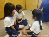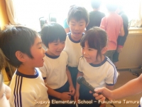 滝根小学校において、3校合同事前学習会を実施しました。初めは緊張していましたが、出会いのゲームを通してあっという間に笑顔に変わり、学校の壁を乗り越えて、一緒に行動する仲間に変わりました。