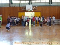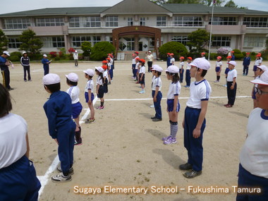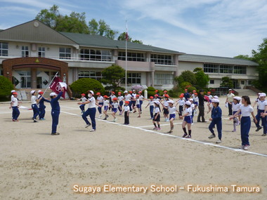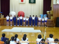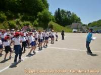 上学年は、さすが、一度の指示できちんとそろった行進ができます。1年生も懸命に足音を合わせながら練習しています。
