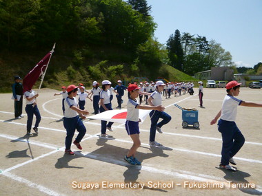 今日の練習は、先日の入場行進の仕上げと開会式の練習です。