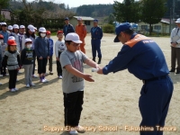 その後、消防士さんから、避難の仕方について、火災発生時の心構えなどを
