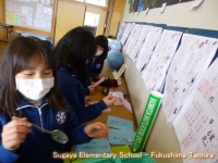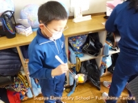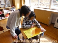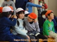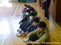 1年生との入場です。 「震源地をさがせゲーム」で楽しんでいます。