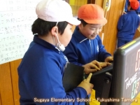 6年生が全員で協力して「震源地」をさがします。さすが6年生!すぐに正解しました。