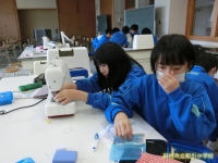 こちらでは,先生に教わったことや教科書を参考に自分たちで上糸のかけ方などにトライ中です。