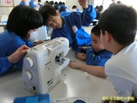 2017年1月25日 13時14分担任の先生が一生懸命ミシンの使い方を教えています。