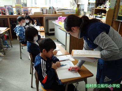 先生は、子どもたちの解答の状況を確かめながら指導をしています。
