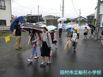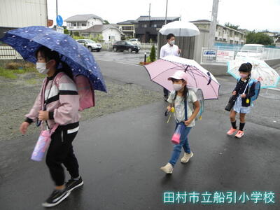 2021年9月1日 15時39分今朝は小雨が降るあいにくの天気でしたが、本部役員さん、2年生と3年生の各学級委員長さん、上町・石森の方部委員さんの協力を得て、あいさつ運動を予定通り実施することができました。ご協力に感謝いたします。
