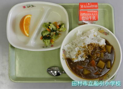 21日(木)チキンカレー・オレンジ・ブロッコリーサラダ・牛乳