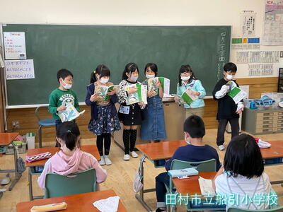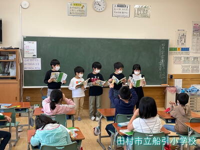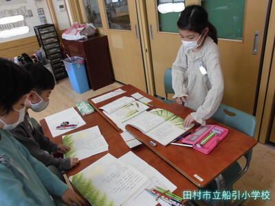 国語科の学習で「ふきのとう」をグループ音読しました。これまで登場人物の気持ちを考えながら読み深めてきて、どういうふうに音読に生かすかを考えながら練習をしました。繰り返し読んできたことで、とても上手に読むことができ、工夫のある音読発表ができました。