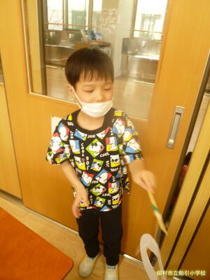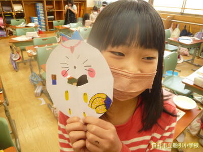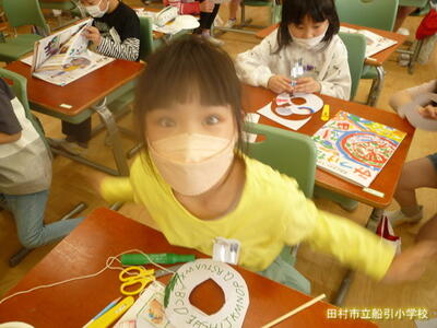 図画工作科の時間に「紙けん玉」を作りました。今日は、どんなけん玉にするか考え、色を塗ったり、模様をつけたりしました。どの子も真剣そのもの。一生懸命に取り組んでいました。「犬にえさをあげるけん玉にしたい。」「笑っている顔のけん玉がいいな。」など、どの子も楽しそうでした。終わりの時間には「もう、4時間目が終わりなんですか。」「早い。」などの声が聞こえてきました。次の時間では仕上げをして、できた作品でみんなで遊んだり、よいところの発表をしたりする予定です。