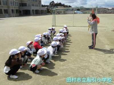 1年生の避難訓練の様子です。1年生は密を避けて二クラスずつ行いました。