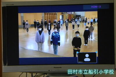 今年度の「1年生を迎える会」は、新型コロナ感染対策のため、オールビデオ出演で行いました。昨年は1年生が体育館にいて、他の学年が交替で体育館に出入りする形で実施しましたが、今年度は集まらないを原則として行ったため、事前にビデオを撮影しておき、Zoomでお互いに見合う形をとりました。初めはどんな会になるのか心配な面がありましたが、やってみると思ったよりもスムーズに会が進行し、みんなで楽しむことができました。1年生も喜んでくれました。