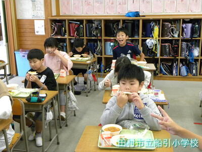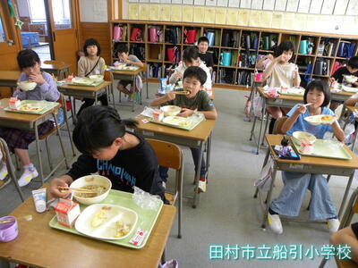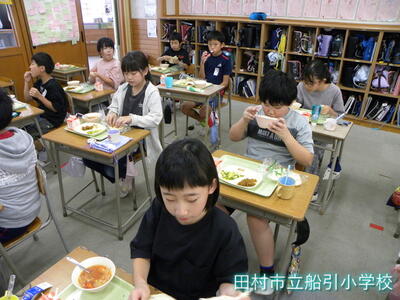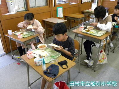 4の1の給食の様子(写真を撮りに行くのが遅くなってしまい、食べ終わりそうなお子さんもいました。)