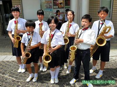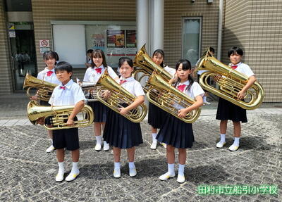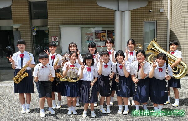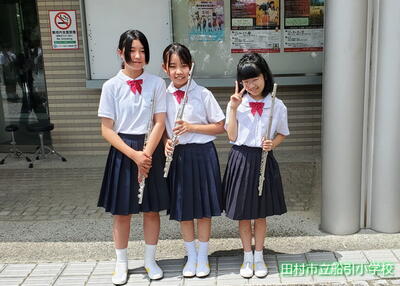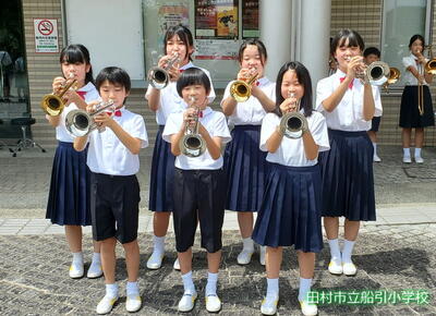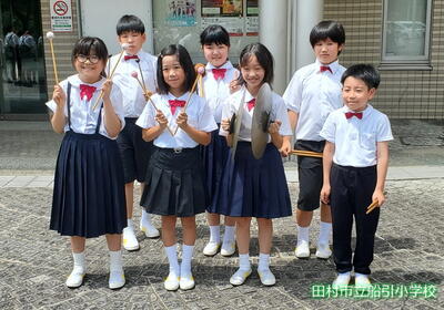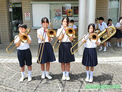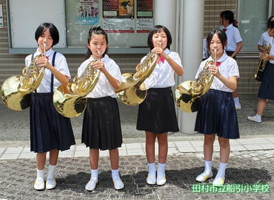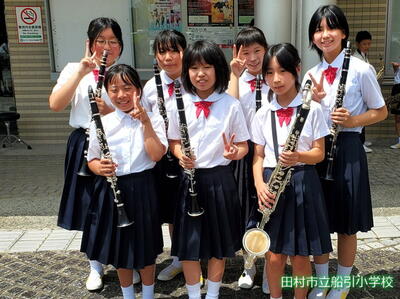 合奏部は8日(木)に行われた「田村地区小学校音楽祭」のあと、文化センター前で記念写真を撮りました。パートごとに写真を撮ることができたので、各パートを紹介します。