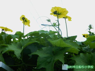 4年生はヘチマの一生を1年をかけて観察します。5年生は受粉についてヘチマやアサガオの花を使って夏休み明けに学習することになっています。