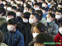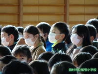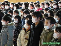 今日の全校集会は、インフルエンザ予防のため全員マスクを着用して入場しました。