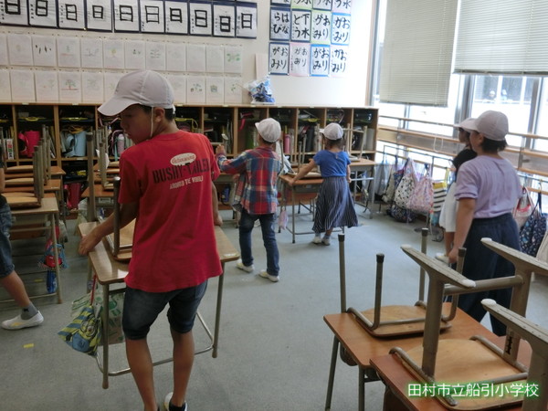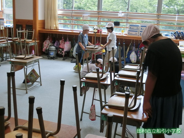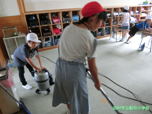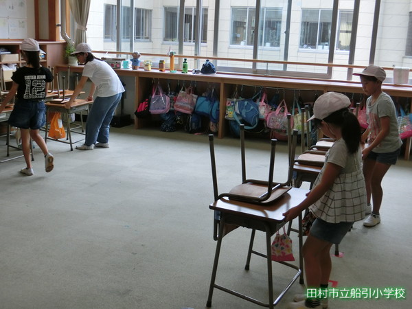 上級生が下級生に指示をしたり教えたりしながら、一生懸命取り組んでいます。