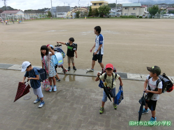 ・風や雨が強くなる前に家に着くよう安全に気を付けて急いで下校すること。