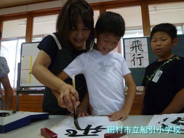 前回の指導のポイントを踏まえながら、「飛行」の字を練習しました。