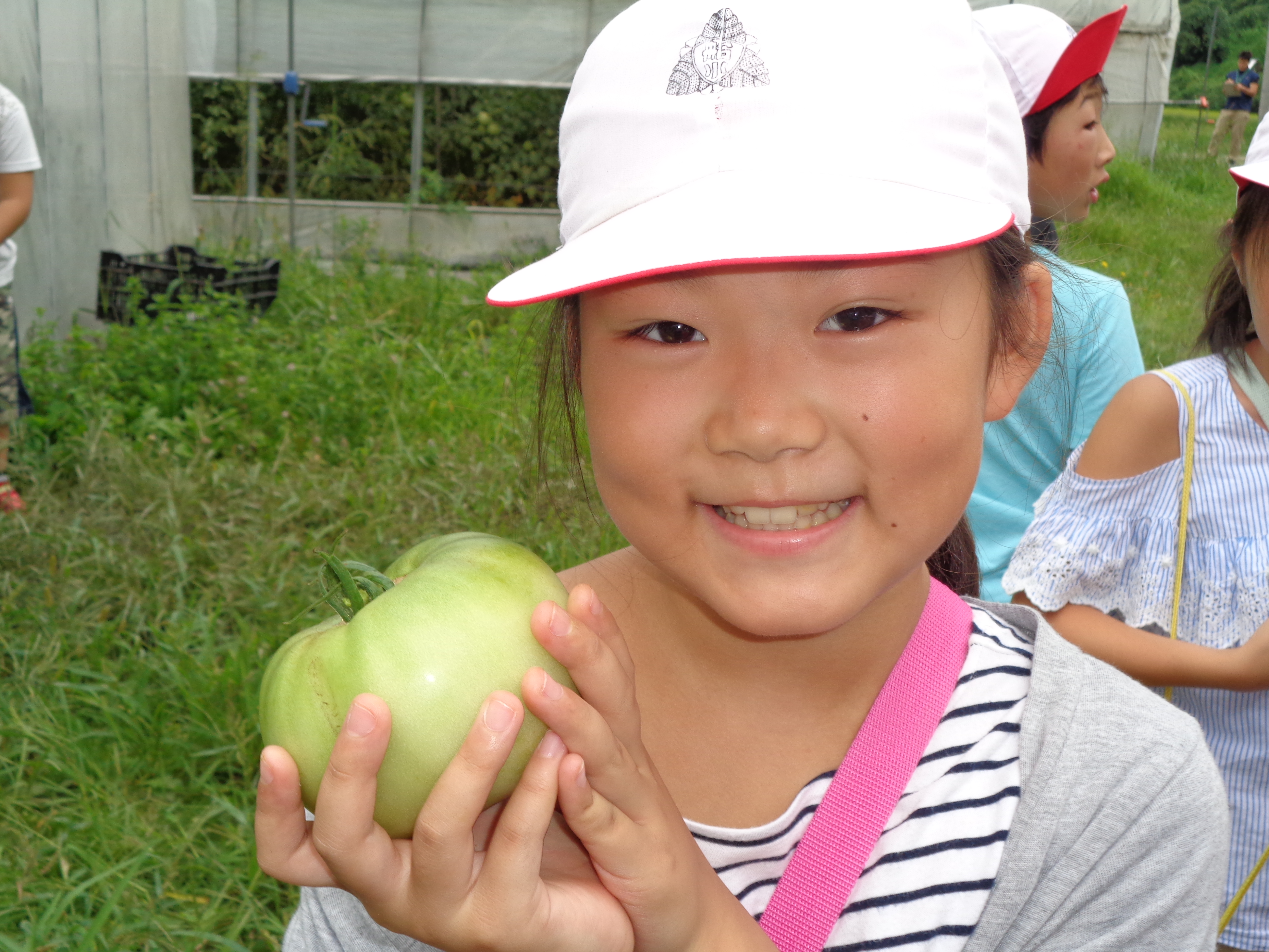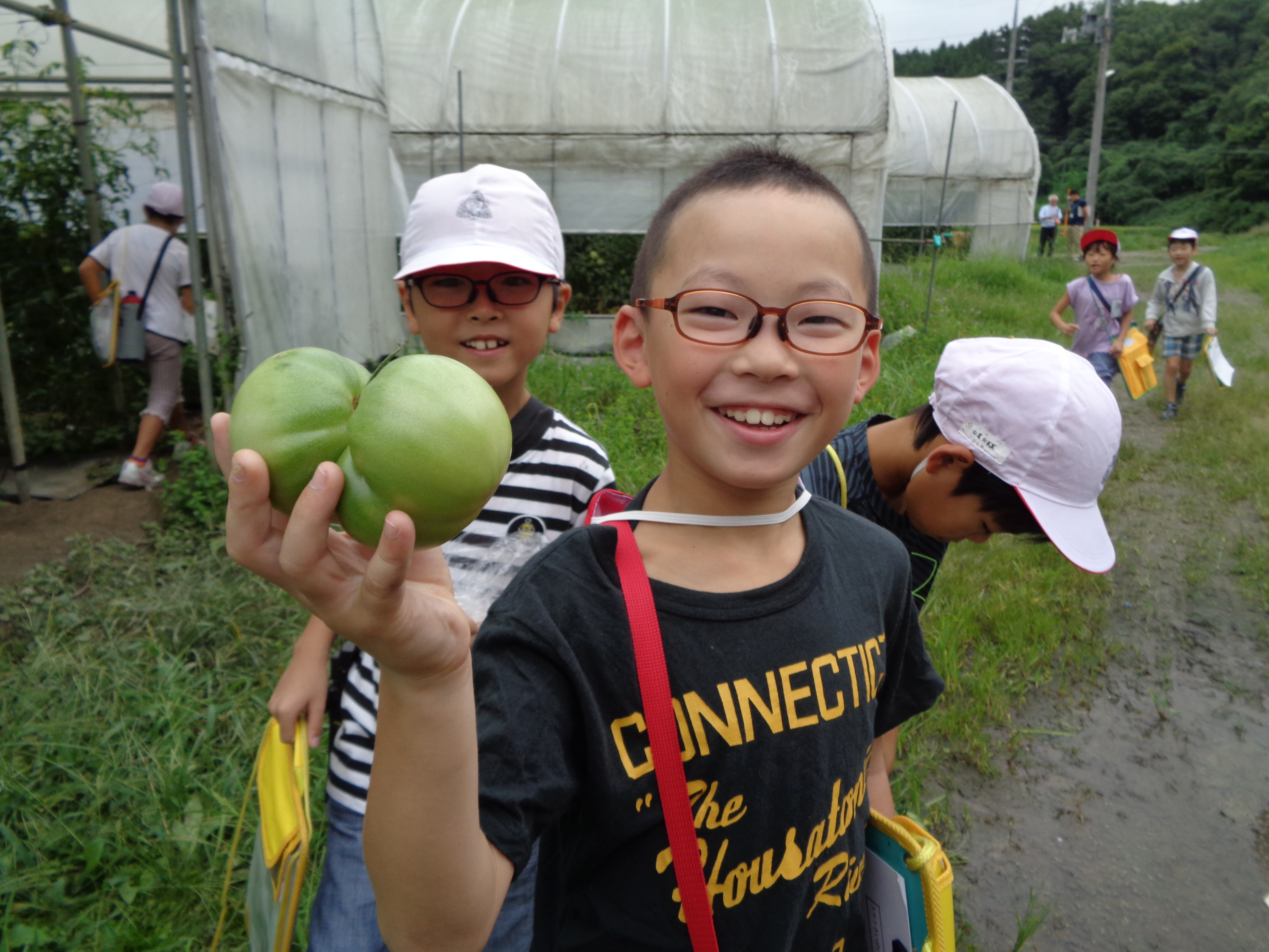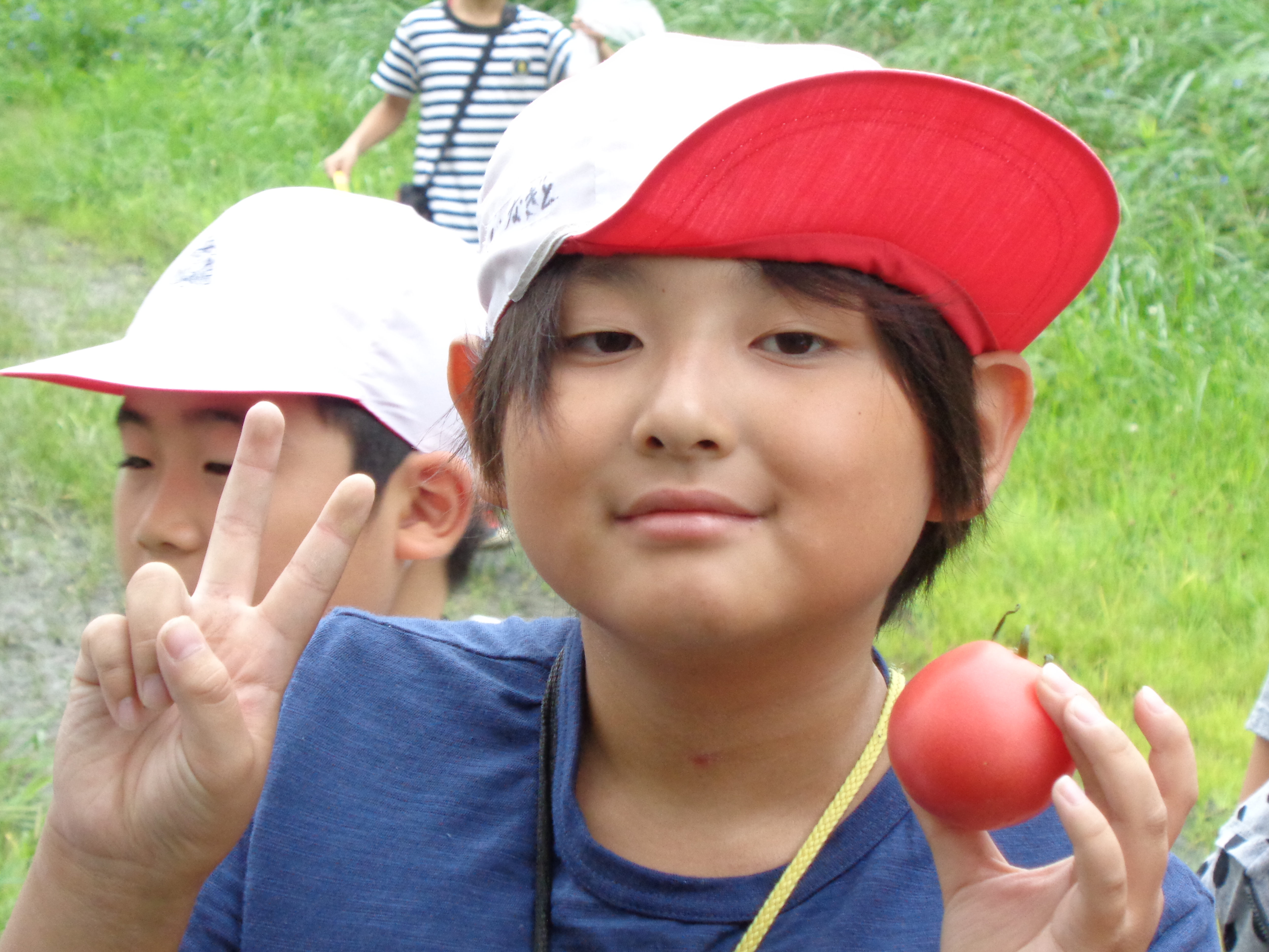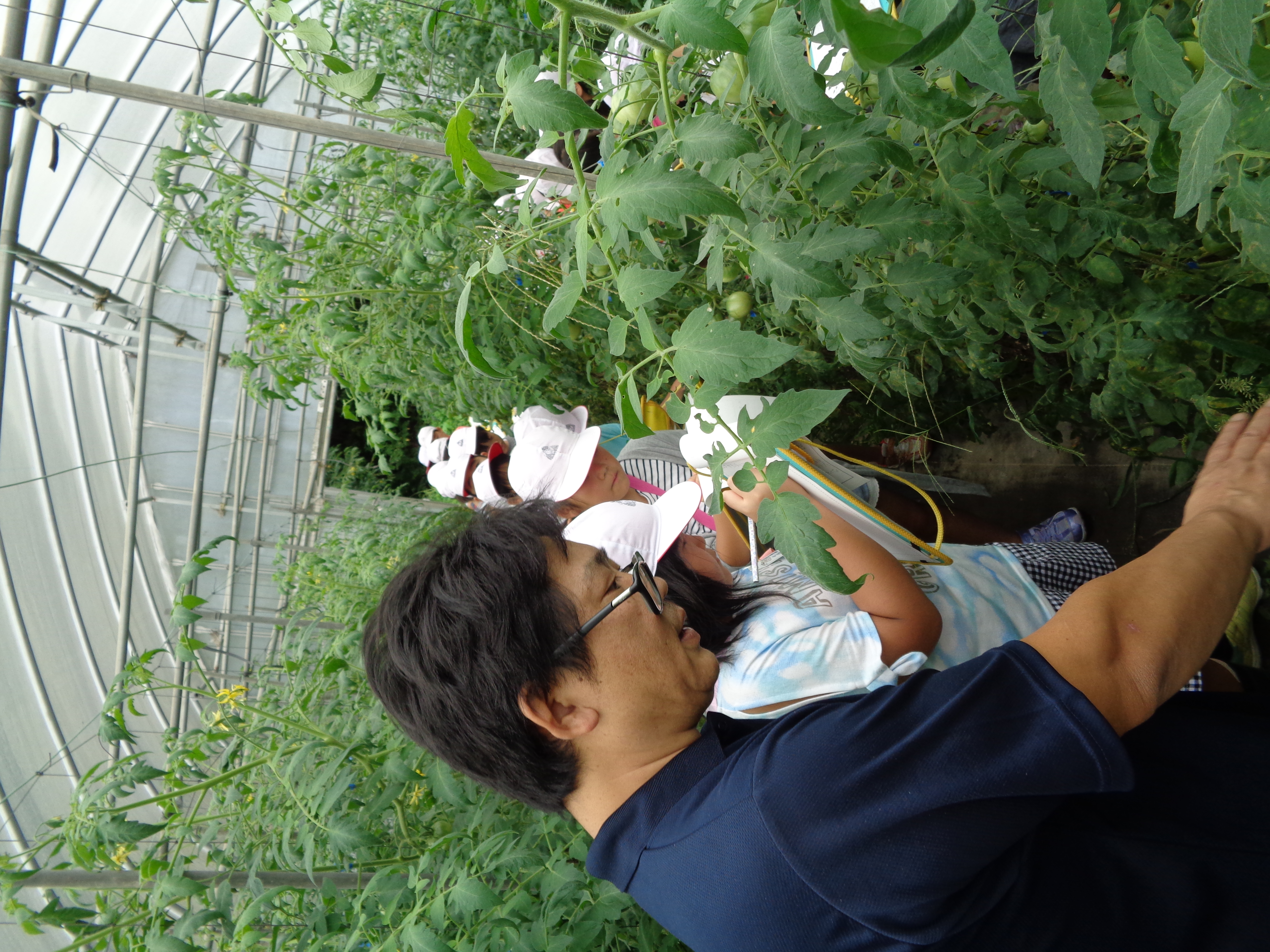 「一人一個ずつトマトをとっていいですよ。」と言っていただき、子どもたちは目を輝かせて収穫していました。
