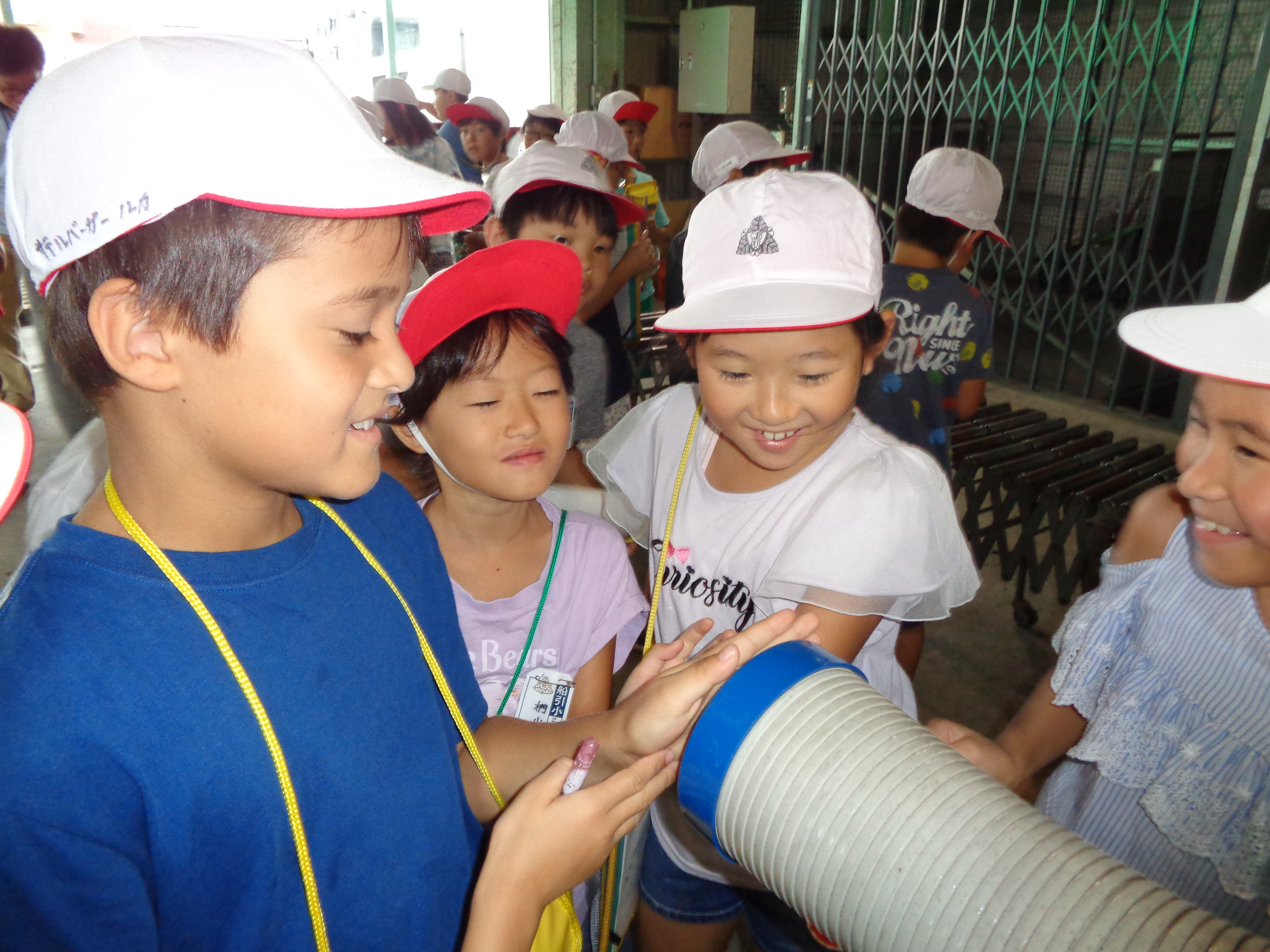 選果場では、機械の力と人の力の協力により、トマトやナスがどんどん箱詰めされていくのを見て、感心しきりの子どもたちでした。