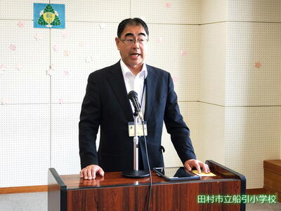 PTA会長あいさつ・学校長あいさつの中で、秋に「田村市陸上競技場」を会場に行う予定の「船引小学校大運動会」への協力をお願いしたいと、重ねてお話がありました。PTA会員の皆様、ご協力をお願いします。